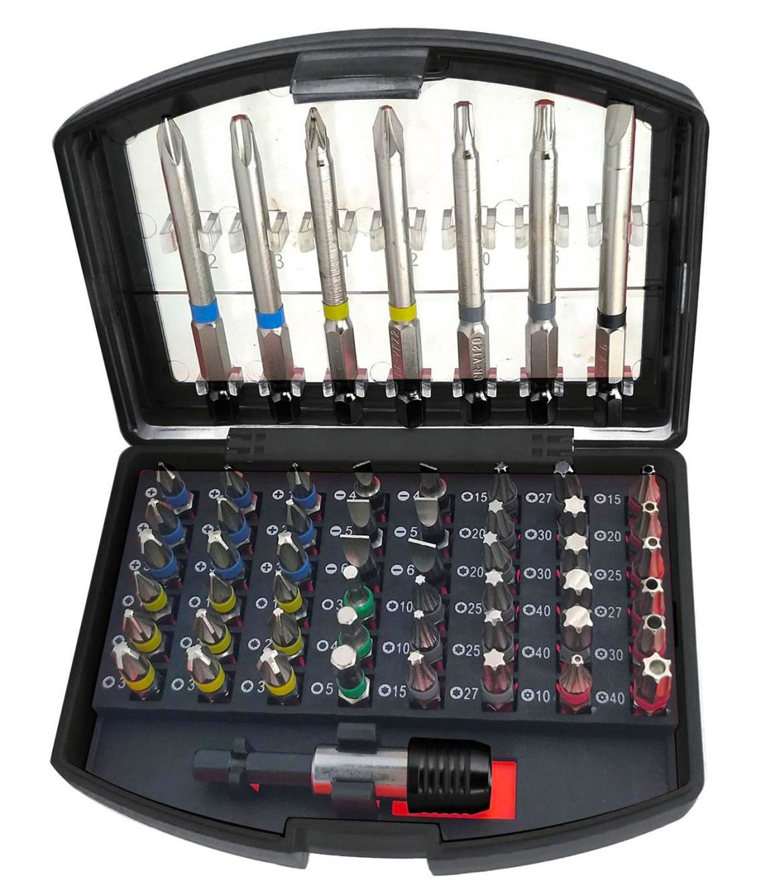 • Set complet cu capete Philips, Pozi, Fente, Hexagonal si Torx